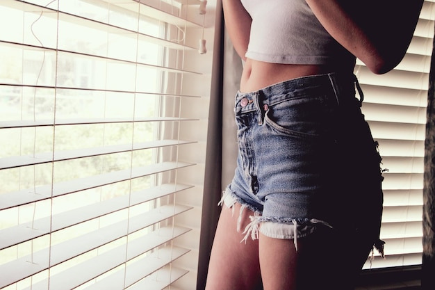 - 하체가 슬림한 체형: 하이웨이스트 디자인의 핫팬츠로 다리 라인을 강조해보세요.