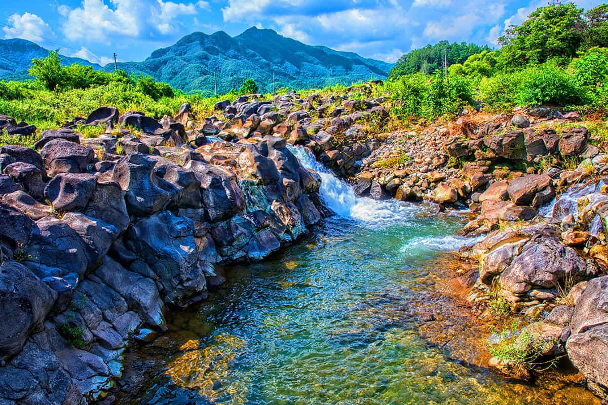 - 특징: 울창한 원시림 속에 숨겨진 **'이단폭포'**가 하이라이트입니다. 마치 그림 같은 두 개의 폭포에서 쏟아져 내리는 물줄기는 보는 것만으로도 시원함을 느끼게 합니다. 물이 워낙 맑고 차가워 한여름에도 오싹할 정도입니다.