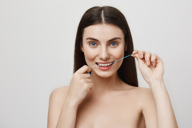 아무리 비싼 치약을 써도 이물질이 남아 있으면 입냄새는 사라지지 않아요. 치실은 구강 청결의 기본 습관입니다.